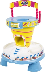 Ein großer Trichter, eine Handkurbel und eine Rinne zum Auskippen in die Becher machen den Betrieb der Konditorei zu einem reizvollen Geschicklichkeitsspiel, das die Feinmotorik trainiert.