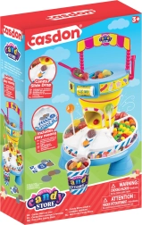 Der stabile Tresen mit Handspender und einer Rinne zum Auskippen in die Becher unterstützt die Hand-Auge-Koordination und Geduld. Dank leuchtender Farben und realistischer Details ist das Set die perfekte Ergänzung für Kinderküchen und Supermärkte.