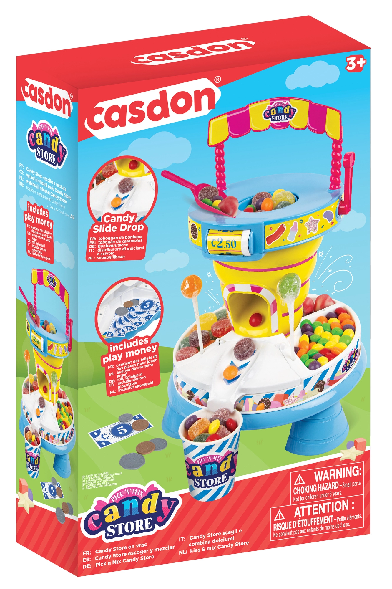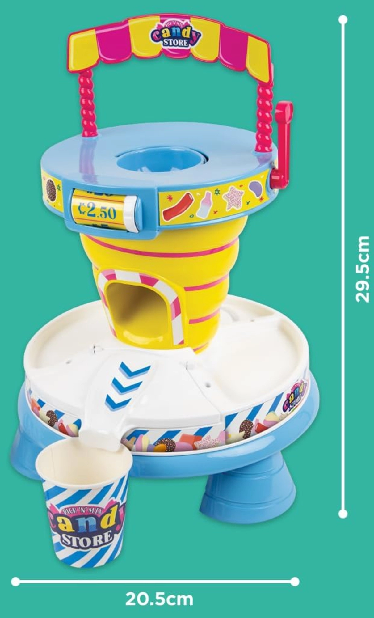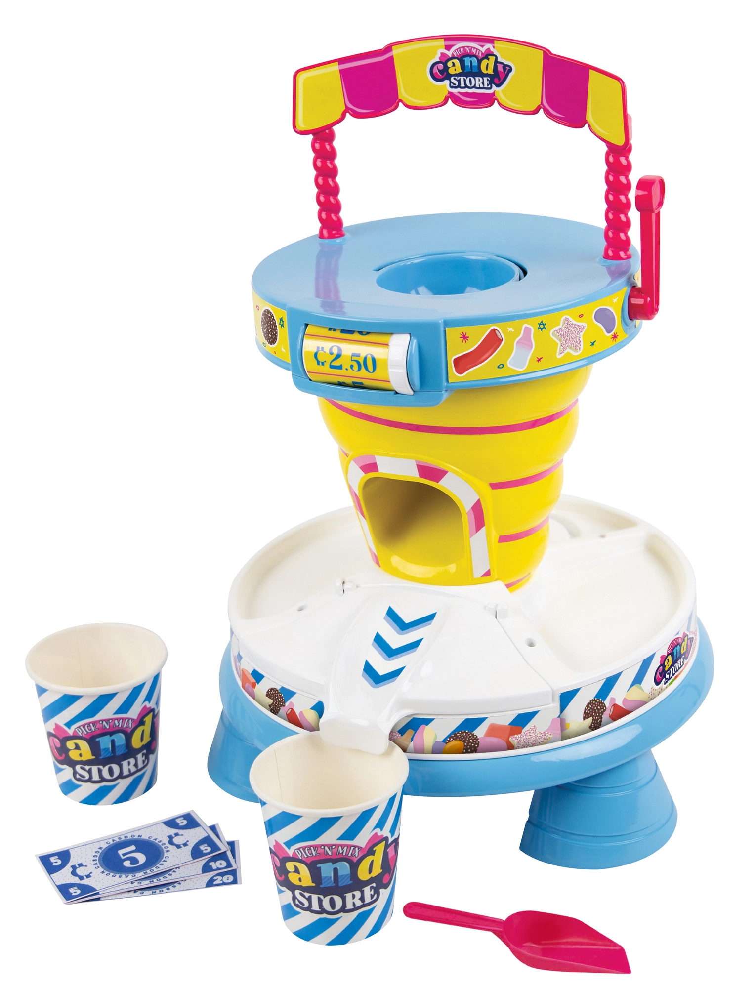 Im Set enthalten sind 2 Becher, eine Schaufel und Spielgeld. Einfach auspacken und eigene „süße“ Mischungen zusammenstellen. Ideal als Ergänzung für die Kinderküche.