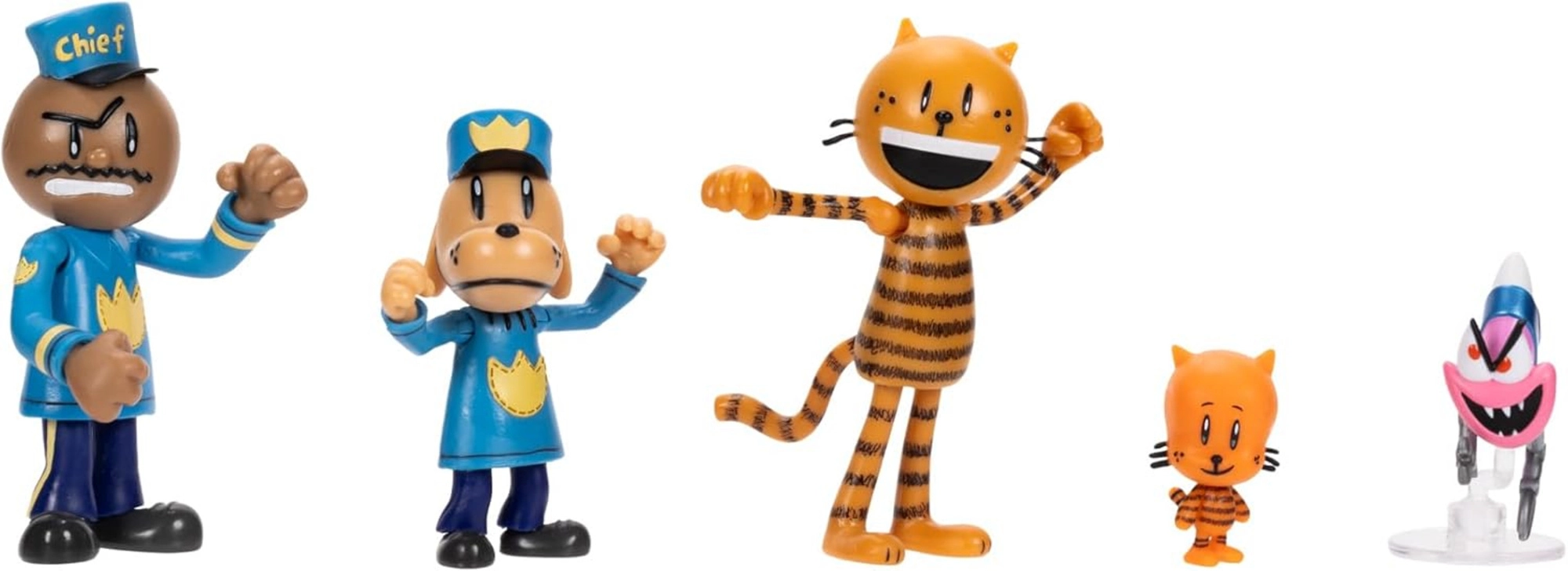 Das Set umfasst Chief, Dog Man, Petey, Lil’ Petey und Flippy – der perfekte Mix aus Helden und Schurken, um eigene Geschichten zu erschaffen.