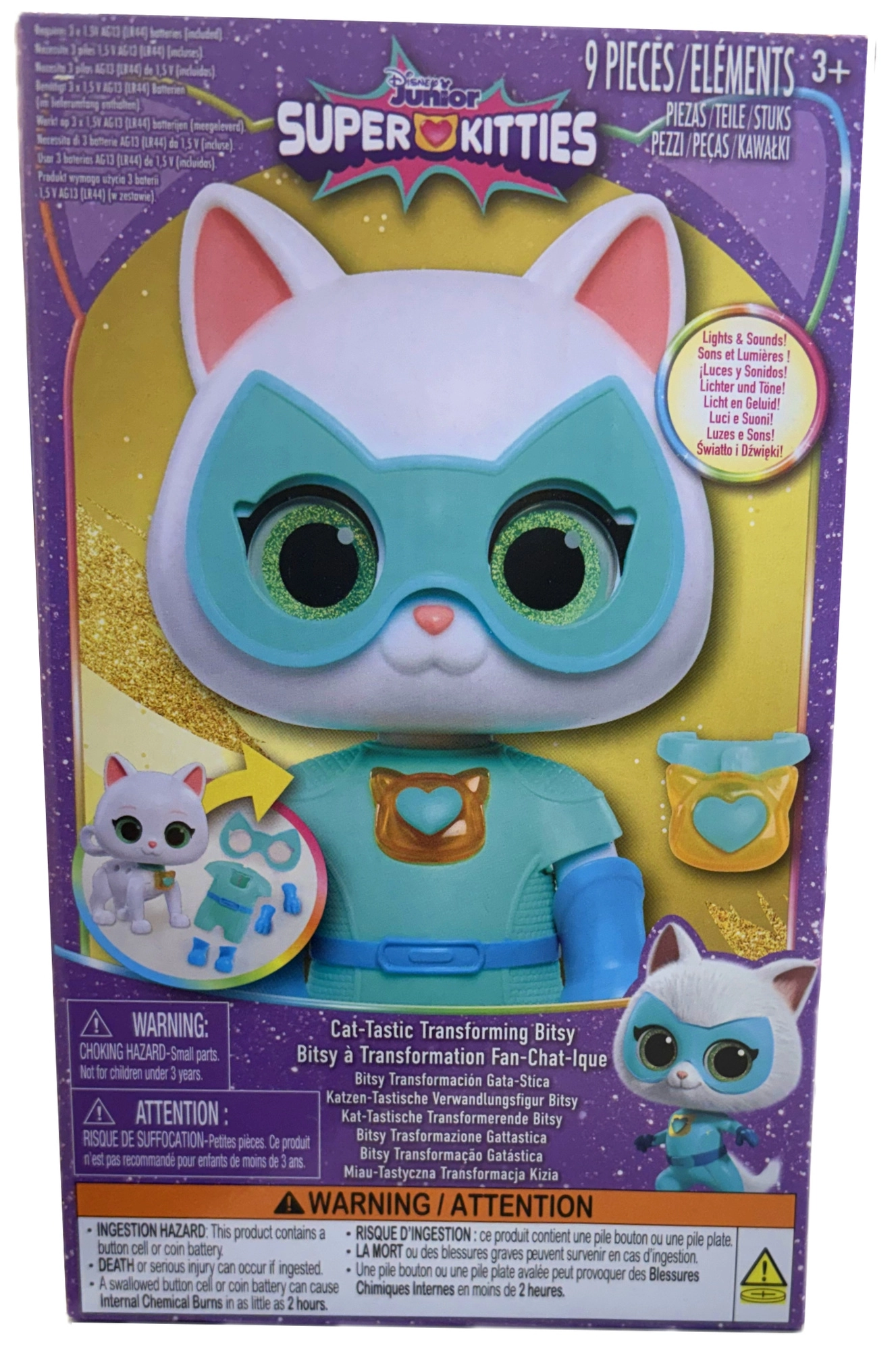 Entdecke den Zauber der Serie SUPERKITTIES mit der interaktiven Bitsy-Figur. Dank kräftiger Farben, authentischer Gestaltung und der Funktion Licht und Sound tauchen Kinder mühelos in ihre Lieblingsabenteuer ein. Die Figur passt perfekt in kleine Kinderhände und kann überallhin mitgenommen werden.
