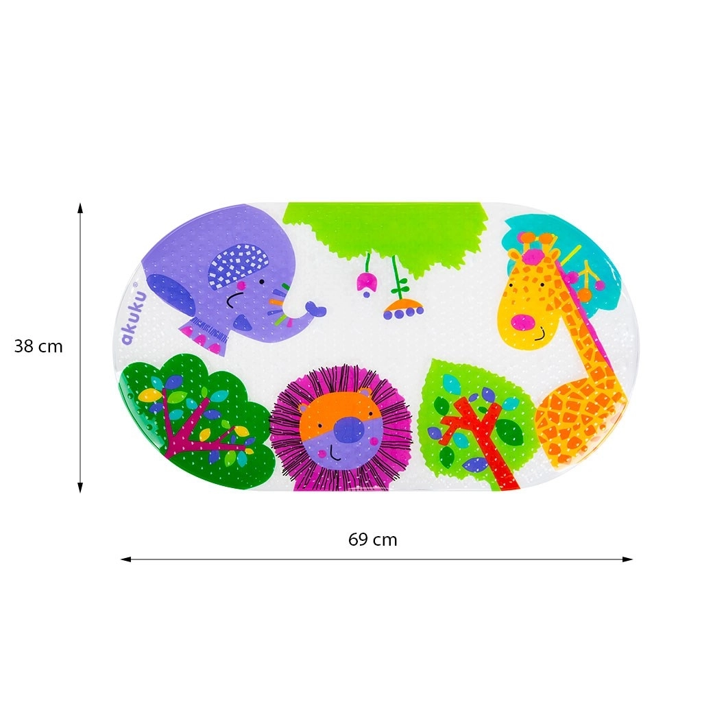 Sicheres und spielerisches Baden für Kinder und Eltern. Die rutschfeste Akuku-Matte mit Saugnäpfen sorgt für Stabilität in Badewanne und Dusche, besteht aus hochwertigem PVC ohne Phthalate und verschönert dank farbigem Aufdruck die tägliche Hygiene. Erhöhte Sicherheit, zuverlässige Haftung und einfache Pflege in einem.