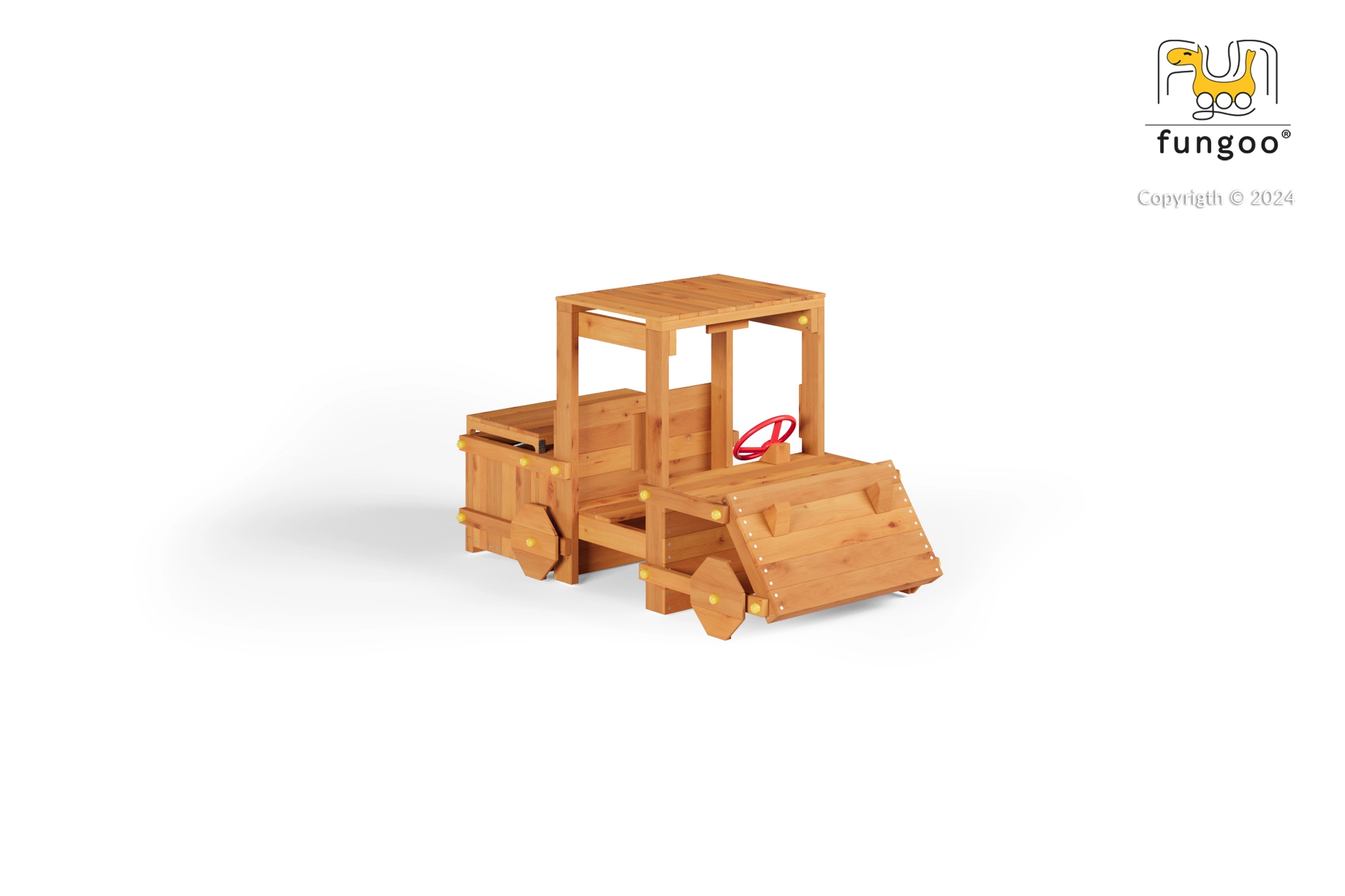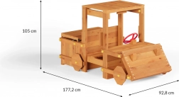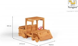 Das hölzerne Outdoor-Fahrzeug GARDEN BUGGY ist ein originelles Element für den Gartenspaß, das zum Spielen als Fahrer, Entdecker oder Baumeister einlädt. Das realistische Design mit vorderer „Schaufel“, rotem Lenkrad und überdachter Kabine motiviert Kinder zu fantasievollen Abenteuern – von Safari bis zur Schatzsuche.