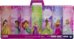 ARIEL, AURORA, BELLE, ASCHENPUTTEL, JASMIN, RAPUNZEL und TIANA – eine komplette Auswahl für endlose Märchenabenteuer und Sammelspaß.
