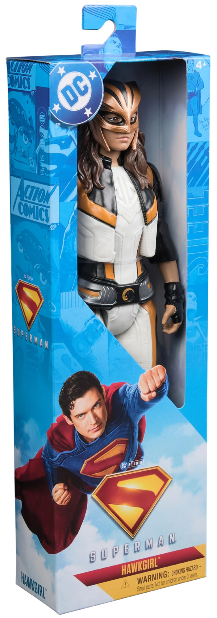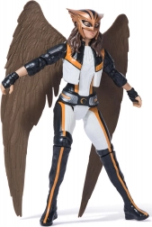 Die HAWKGIRL-Figur im schwarz‑weißen Anzug mit goldenen Akzenten fängt die Comic- und Animationsvorlage der Kriegerin von Thanagar originalgetreu ein. Dank beweglicher Arme, Beine und Kopf lassen sich mühelos Action-Posen für Kampf und Flug mit den separaten braunen Flügeln einstellen.