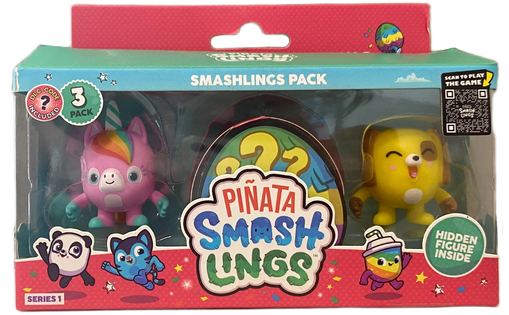 Tauchen Sie ein in die farbenfrohe Welt der PIÑATA SMASHLINGS – Energie, Sammelfreude und kreatives Spielen in einem. Jede Packung enthält 3 zufällige Figuren aus Serie 1, die mit satten Farben, markanten Details und freundlichen Gesichtern bezaubern. Dabei ist auch ein DLC-Code zum Freischalten von Boni im Spiel – mit etwas Glück in Gold oder Silber.