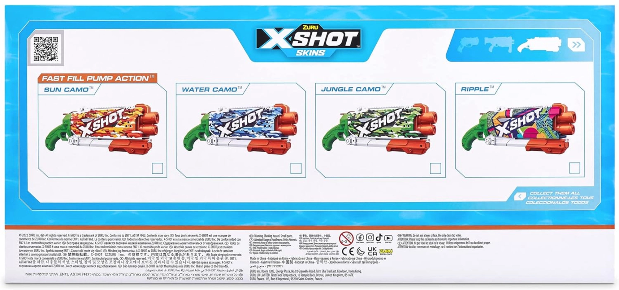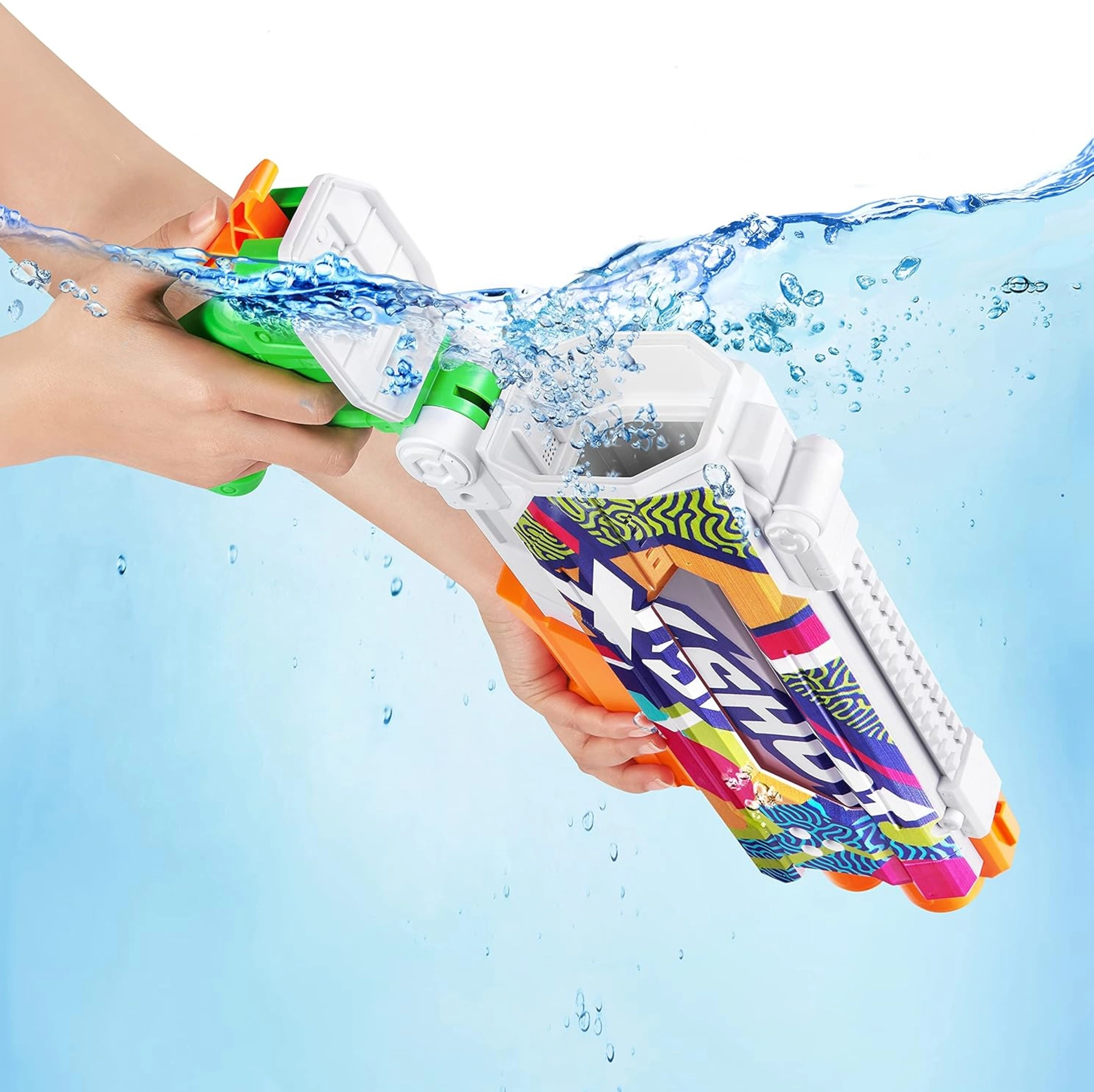 Die Wasserpistole ZURU X-SHOT Skins Fast-Fill Ripple hebt Wasserschlachten auf ein neues Niveau. Dank der Fast-Fill-Technologie füllst du den Tank in nur einer Sekunde – einfach öffnen, eintauchen, schließen und du bist zurück im Spiel. Die 49 cm Länge sorgen für hervorragenden Griff, Stabilität und Leistung für präzise Treffer.