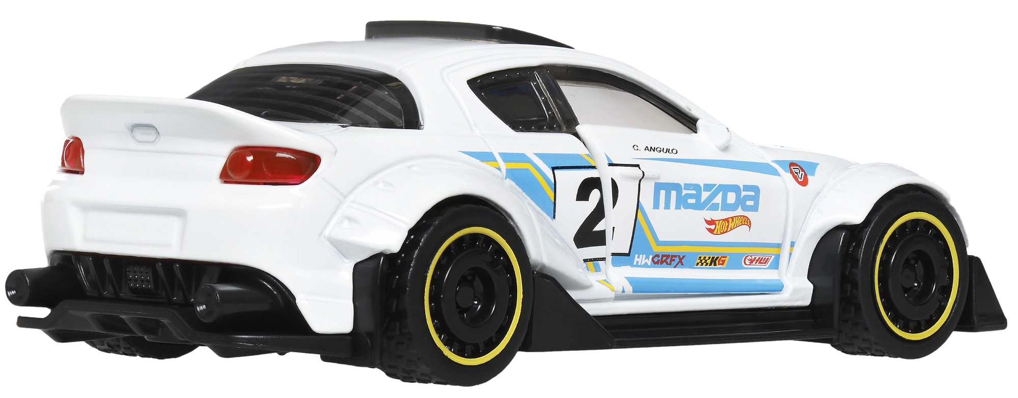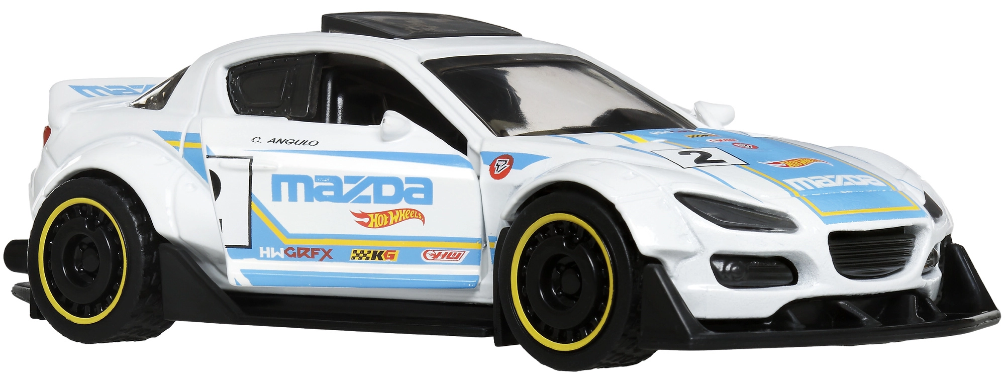 Entdecken Sie das stylische Rennauto HOT WHEELS 2004 Mazda RX-8 Custom mit dynamischem Pull-Back-Antrieb. Der größere Maßstab 1:43 bietet mehr Details, bessere Handhabung und Spaß für kleine wie große Fans rasanter Fahrten.
