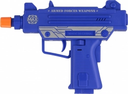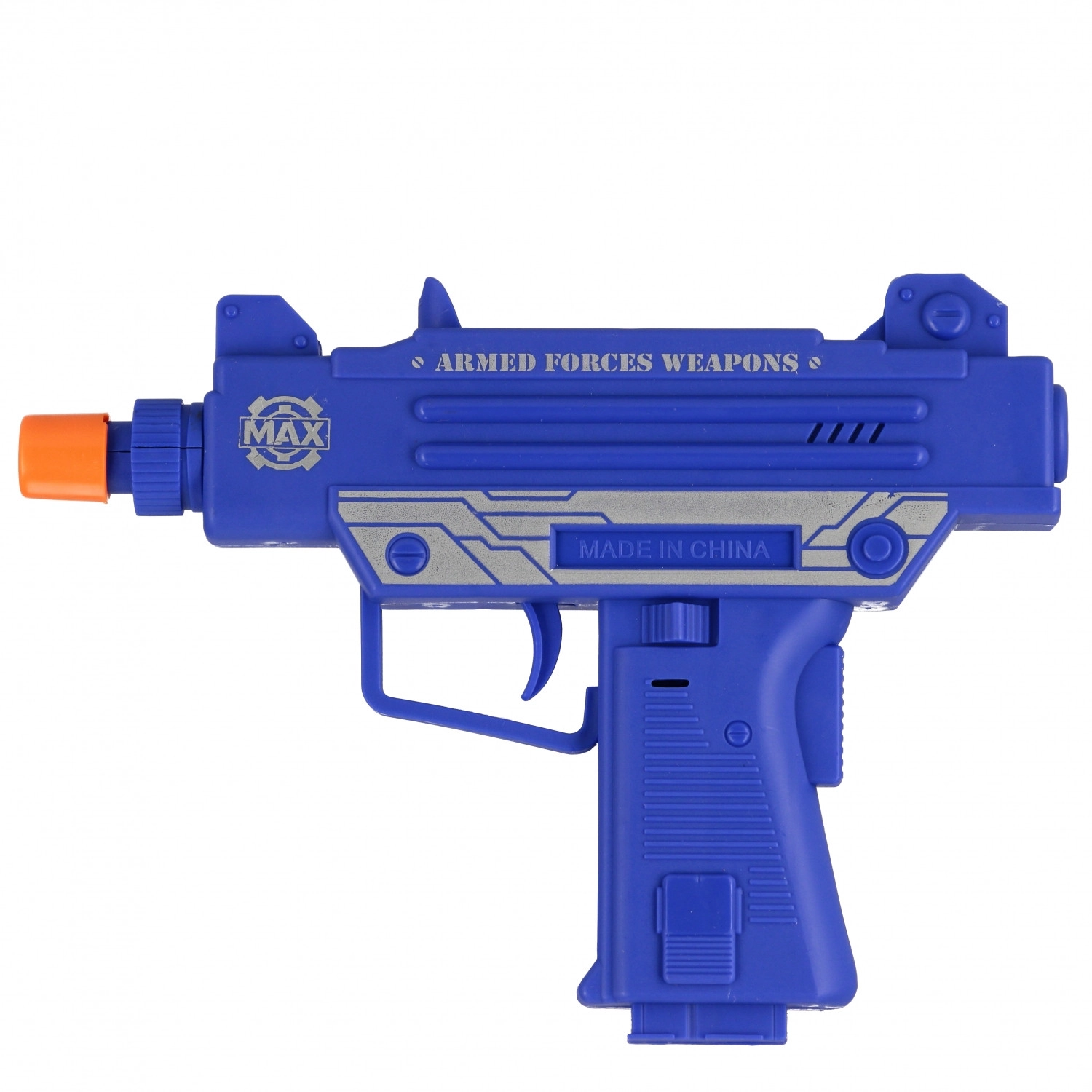 Die Kunststoffwaffe mit orangefarbener Sicherheitsspitze und geformtem Griff ist für bequemes Halten und sicheres Spielen von Kindern konzipiert.