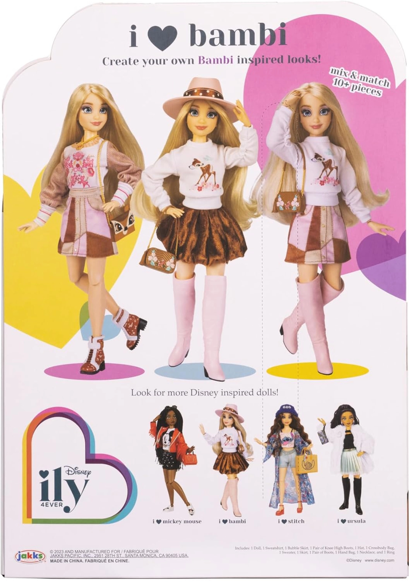 Im Set finden Sie zwei stylische Kleidungskombinationen und Accessoires, inspiriert von Bambi. Sie lassen sich zu Dutzenden origineller Looks kombinieren.