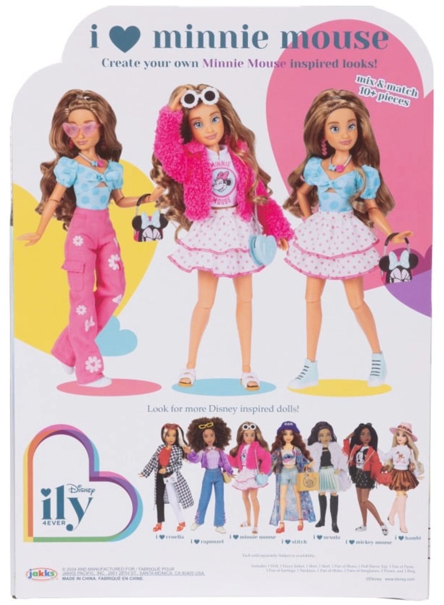 Entdecke die Premium-Puppe Disney ILY 4Ever, inspiriert von der beliebten Minnie. Dank 13 Artikulationspunkten nimmt sie mühelos dynamische Posen ein, die die Fantasie anregen und Kindern ermöglichen, eigene Modegeschichten zu kreieren. Zwei komplette Outfits und eine umfangreiche Accessoire-Auswahl eröffnen vielfältige Kombinations- und Stylingmöglichkeiten.