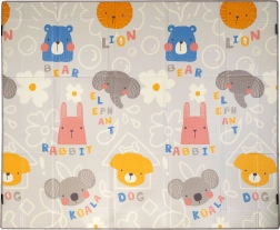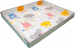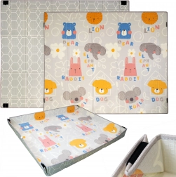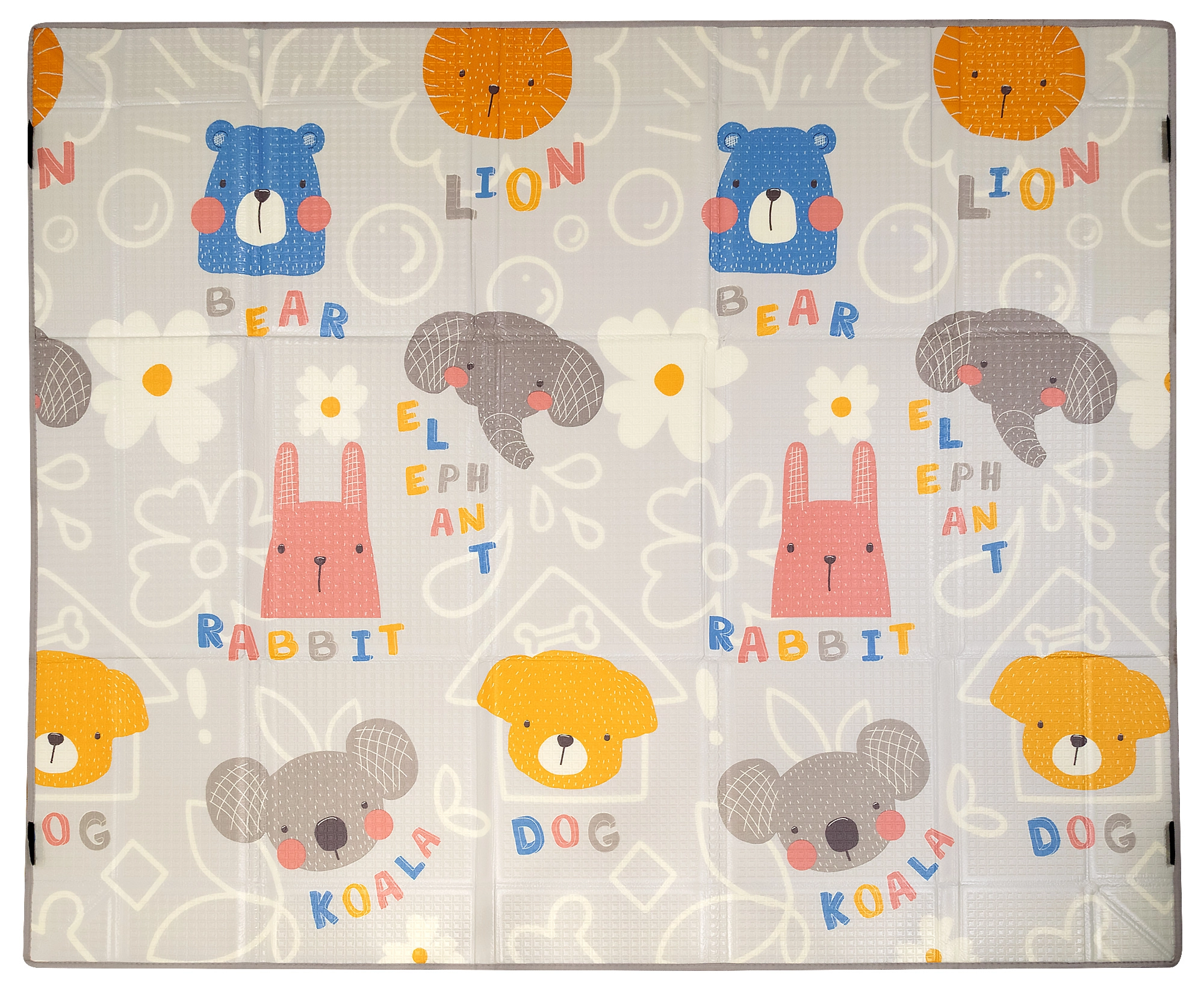 Eine Seite mit Tieren und englischen Bezeichnungen zur Förderung frühen Lernens, die andere mit geometrischen Mustern passend für jedes Interieur.