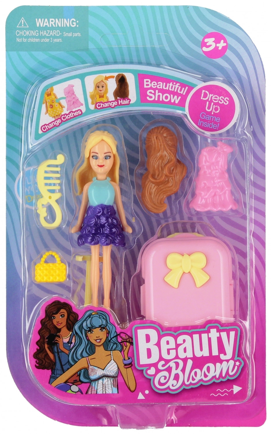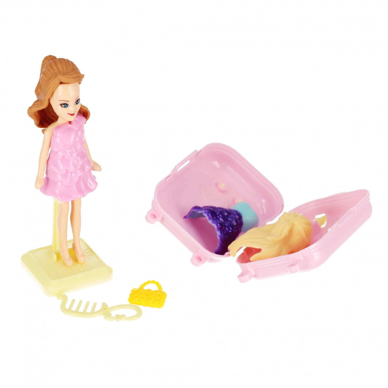 Dieses Puppenset bietet Kindern jede Menge Spaß und Möglichkeiten für fantasievolles Spiel. Dank des praktischen Zubehörs wie Koffer, Handtasche und Kamm können Kinder den Stil der Puppe leicht verändern und neue Geschichten erfinden. Die kompakte Größe von 9 cm ist ideal für unterwegs und für kleine Kinderhände.
