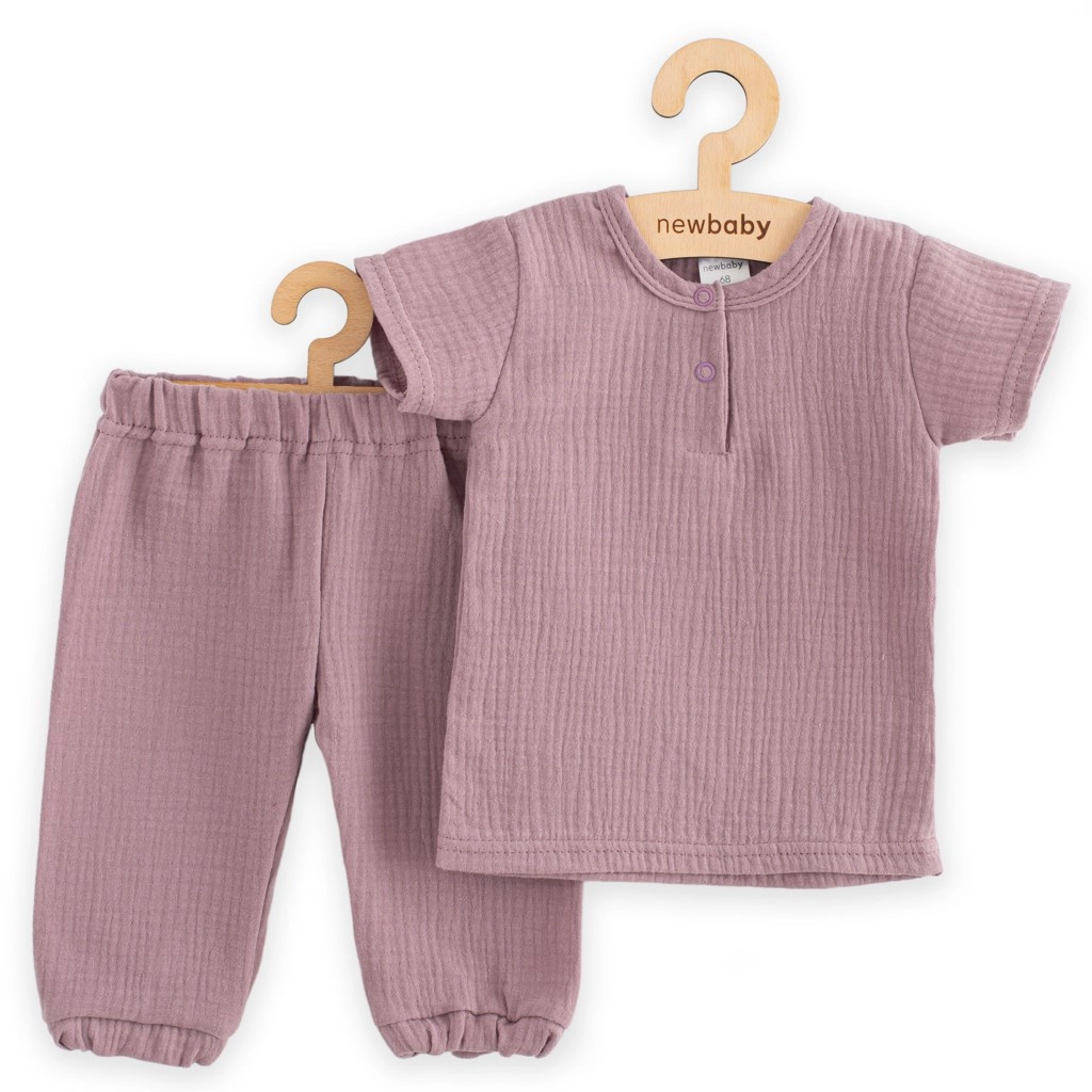 Entdecken Sie die Leichtigkeit und den Komfort von Musselin im Baby-Set NEW BABY in einem zarten Lavendelton. Das Set besteht aus einem T-Shirt mit kurzen Ärmeln und einer bequemen Hose. Musselin aus 100 % Baumwolle ist weich, atmungsaktiv und sanft zur empfindlichen Haut, zugleich widerstandsfähig gegen häufiges Waschen.