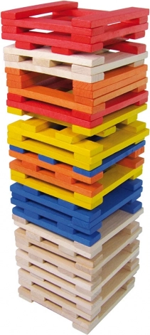 Das Set enthält 100 stabile, glatte Plättchen in Natur- und kräftigen Farben – ideal für Türme, Häuschen und originelle Konstruktionen.