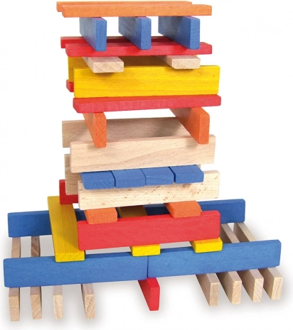 Beim Stapeln und Ausbalancieren der einzelnen Teile trainieren Kinder Handkoordination, Geduld und räumliches Denken.