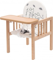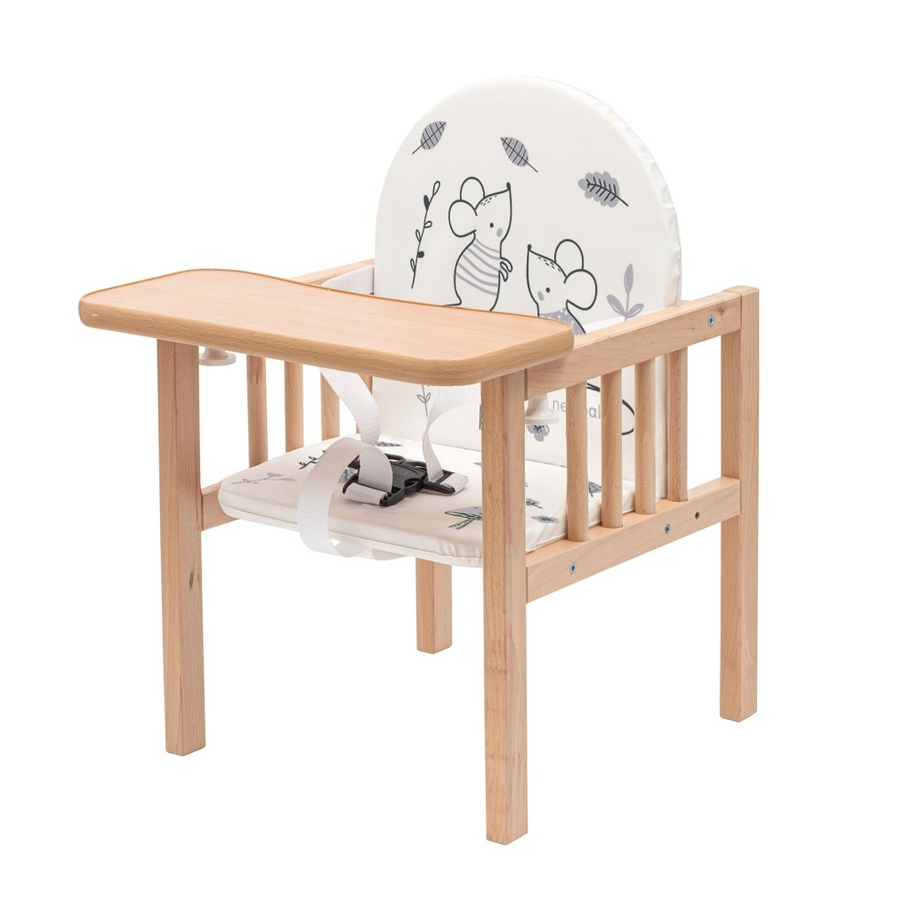 Der Holz-Hochstuhl NEW BABY Jerry vereint Sicherheit, Komfort und Langlebigkeit. Er besteht aus hochwertigem Buchenholz, das hohe Stabilität und Widerstandsfähigkeit im täglichen Gebrauch gewährleistet. Die weiche Polsterung mit fröhlichen Motiven und das abwischbare Esstablett erleichtern die Pflege und verschönern jede Mahlzeit.