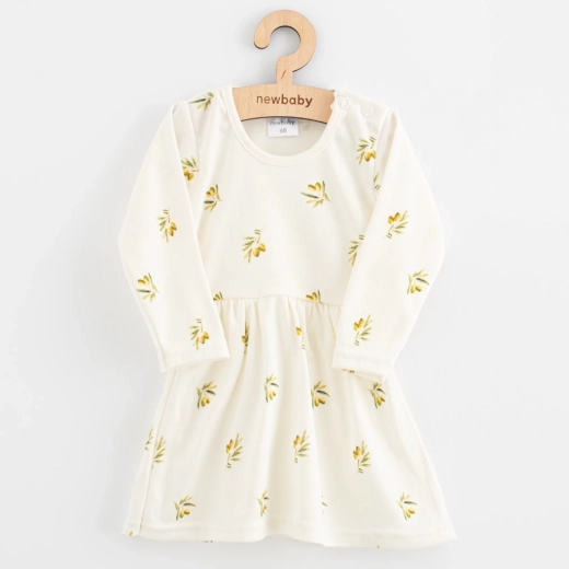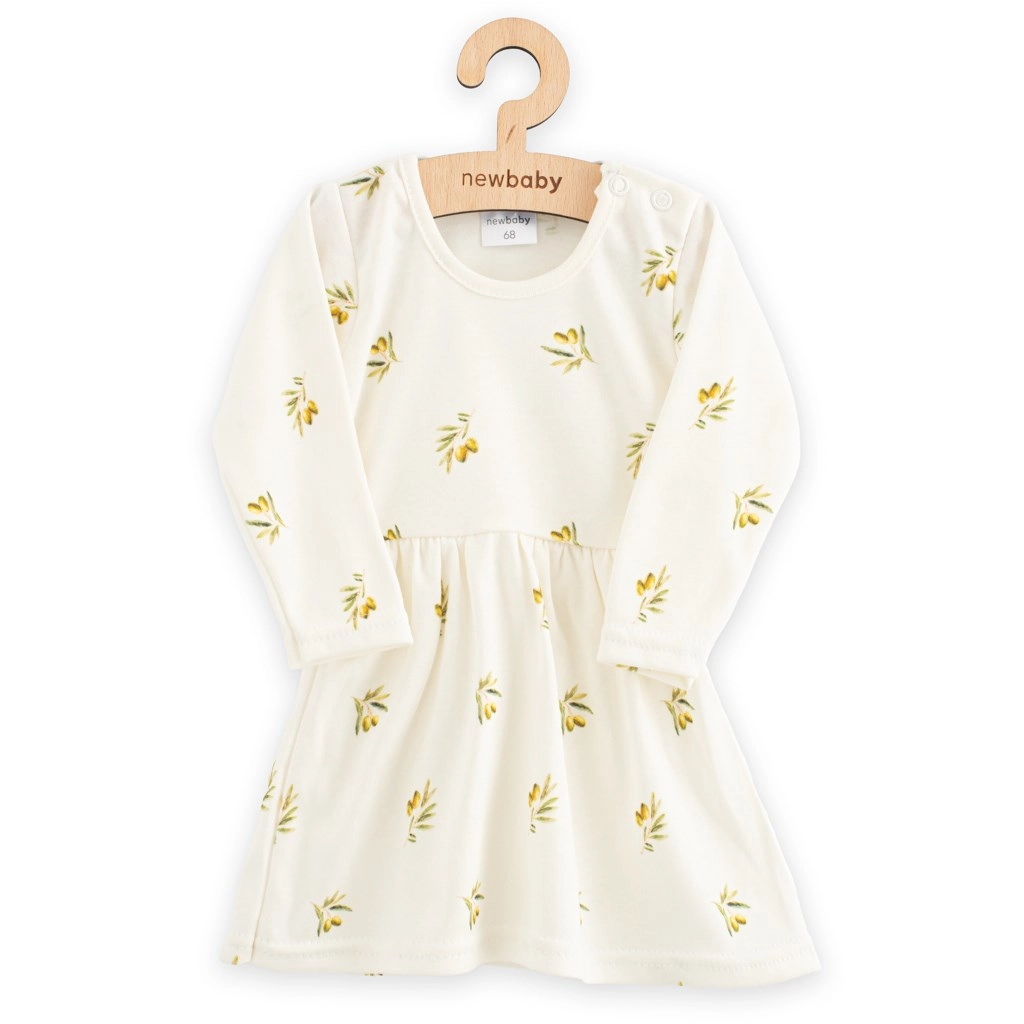 Elegantes und bequemes Kinderkleid New Baby Olives – ein Hingucker für jede kleine Fashionista. Dank der biologischen Bio-Baumwolle ist es außergewöhnlich weich, atmungsaktiv und hautfreundlich, daher ideal auch für Babys mit Allergien oder atopischer Dermatitis. Der fluffige Rock und der fröhliche Olivenprint verleihen dem Outfit einen einzigartigen Alltagsstil.