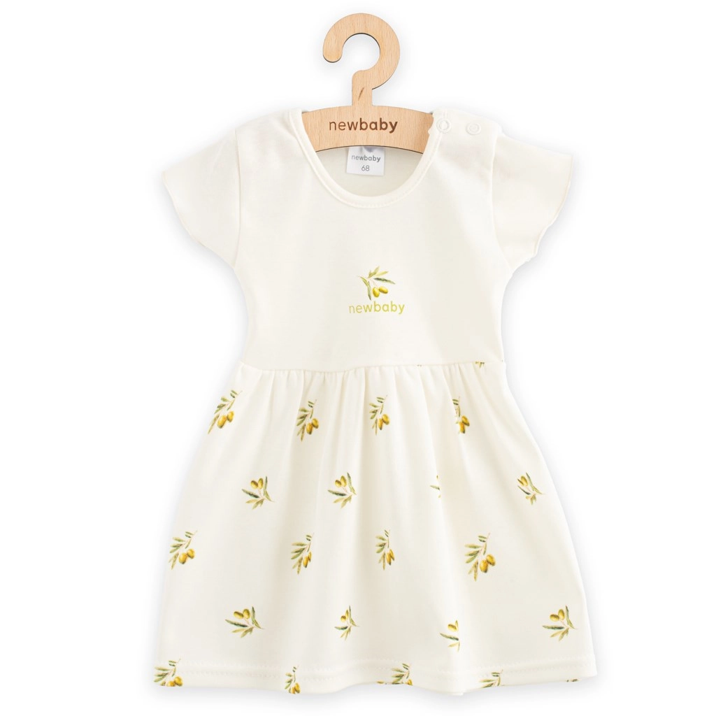 Stilvolles Kleidchen für kleine Fashionistas aus der New Baby Oliven-Kollektion, mit zart gerafftem Rockteil und verspieltem Oliven-Print. Dank des natürlichen Materials ist das Kleid weich, atmungsaktiv und hautschonend – ideal für den Alltag.