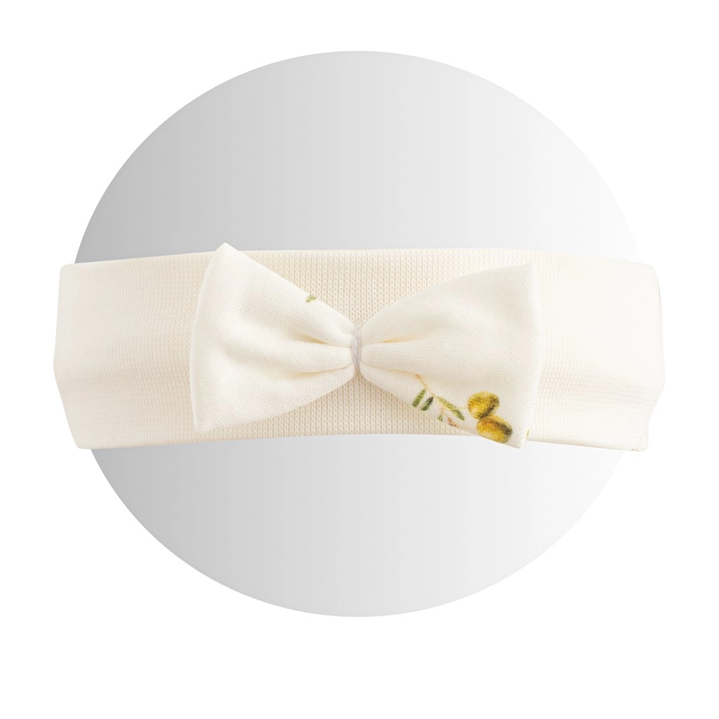 Süßes und bequemes Kinder-Haarband aus Bio-Baumwolle mit Oliven-Motiv von New Baby. Es ist elastisch, sanft zur Haut und passt sich hervorragend dem Kinderköpfchen an. Ideal für den Alltag und festliche Anlässe.