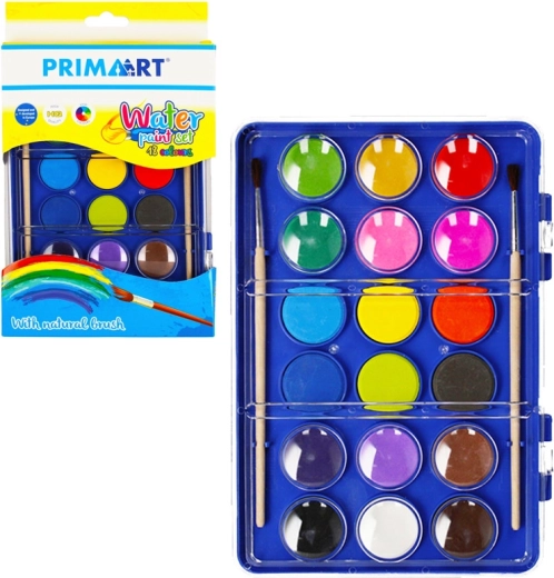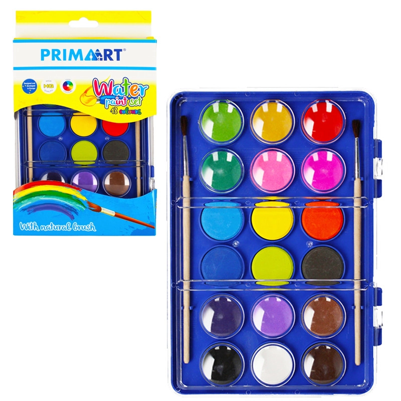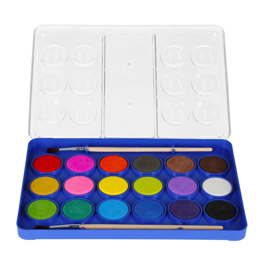 Praktisches Aquarellfarben-Set für kleine und große Künstler. Enthält 12 intensive Farben und 2 hochwertige Pinsel in einem kompakten Etui mit den Maßen 15 × 24 × 2 cm. Ideal für Kinder ab 3 Jahren sowie für Einsteiger.
