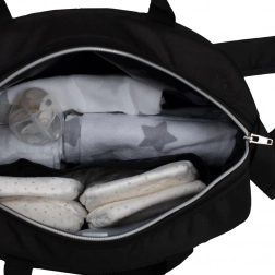 Die durchdachte Aufteilung ermöglicht schnellen Zugriff auf das Wichtigste und bequemes Tragen auf mehrere Arten. Dank des verstellbaren langen Schultergurts und der kurzen Tragegriffe können Sie die Tasche in der Hand, über der Schulter tragen oder mithilfe von Clips am Kinderwagen befestigen.