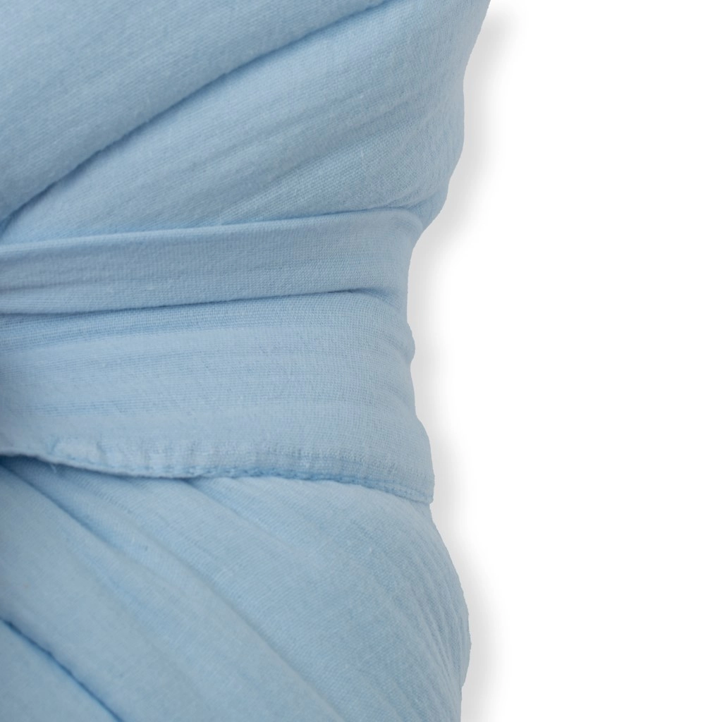 Die doppellagige, luftige Struktur des Musselins ermöglicht eine hervorragende Atmungsaktivität und hilft, eine angenehme Temperatur zu halten, damit das Baby nicht überhitzt und sich geborgen fühlt.