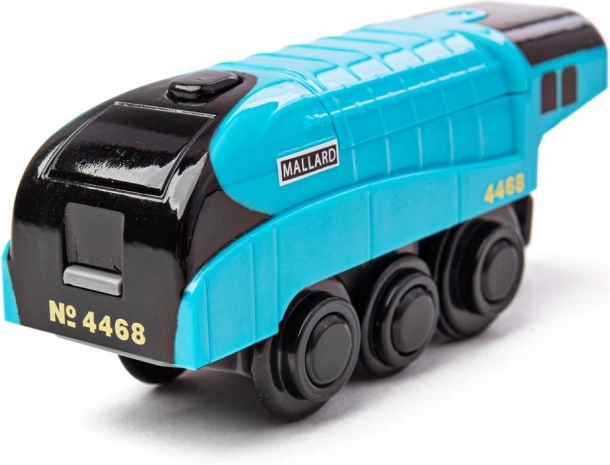 Die elektrische Lokomotive Mallard besticht nicht nur durch ihr markantes blaues Design, sondern auch durch ihre Fähigkeit, dank ihres Magnetsystems weitere Waggons zu ziehen. Die einfache Steuerung mit nur einem Knopf auf dem Schornstein begeistert durch ihre Benutzerfreundlichkeit. Die Lok wird von 2 AAA-Batterien betrieben, die nicht im Lieferumfang enthalten sind.