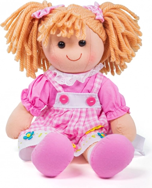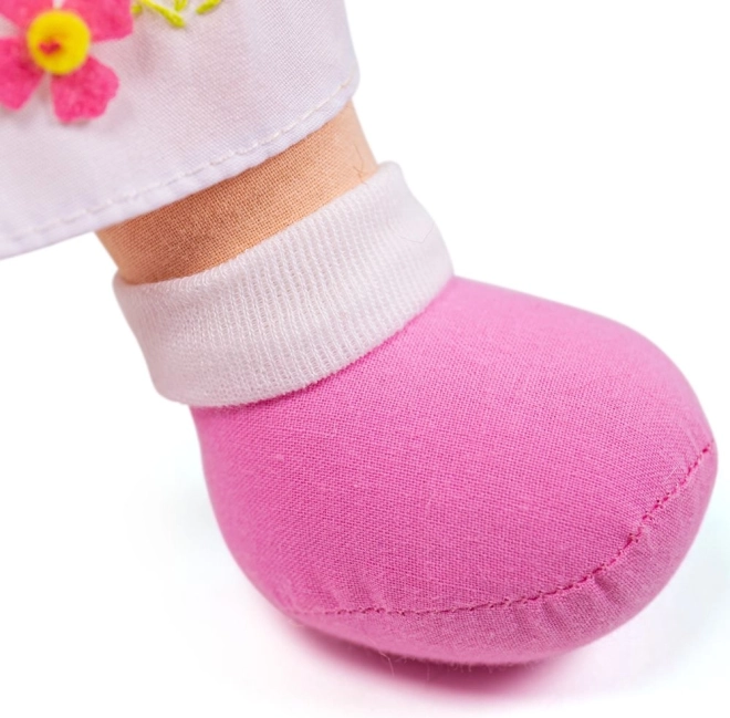 Puppe Eva besteht aus einem weichen und sicheren Material, das ideal zum Spielen und Kuscheln geeignet ist.