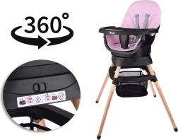 Dieser multifunktionale 6-in-1-Hochstuhl lässt sich mühelos an jede Entwicklungsphase anpassen – von den ersten Beikostmahlzeiten bis zum selbstständigen Sitzen und Spielen. Dank des drehbaren Sitzes mit 360° und 8 Arretierpositionen sowie dem sicheren Fünfpunktgurt bietet er maximalen Komfort und Sicherheit. Das abnehmbare, ergonomisch geformte Tablett reinigen Sie im Handumdrehen unter fließendem Wasser oder in der Spülmaschine.
