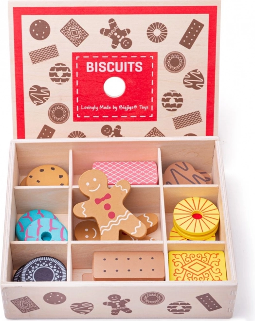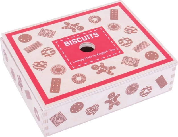 Holzkiste mit Keks-Spielzeug