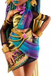 Nefera De Nile, die ältere Schwester von Cleo, verzaubert auf den ersten Blick. Die Kombination aus satten Lila-, Türkis- und Goldtönen, reich verzierten Bijoux und raffinierten, vom Alten Ägypten inspirierten Kleiderdetails macht diese Puppe zu einem auffälligen Stück zum Spielen und Ausstellen. Gelenkige Gliedmaßen (Hals, Schultern, Ellbogen, Hüften und Knie) ermöglichen natürliches Posieren und stylische Fotoszenen.