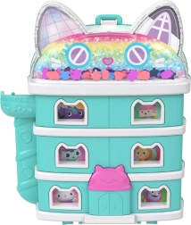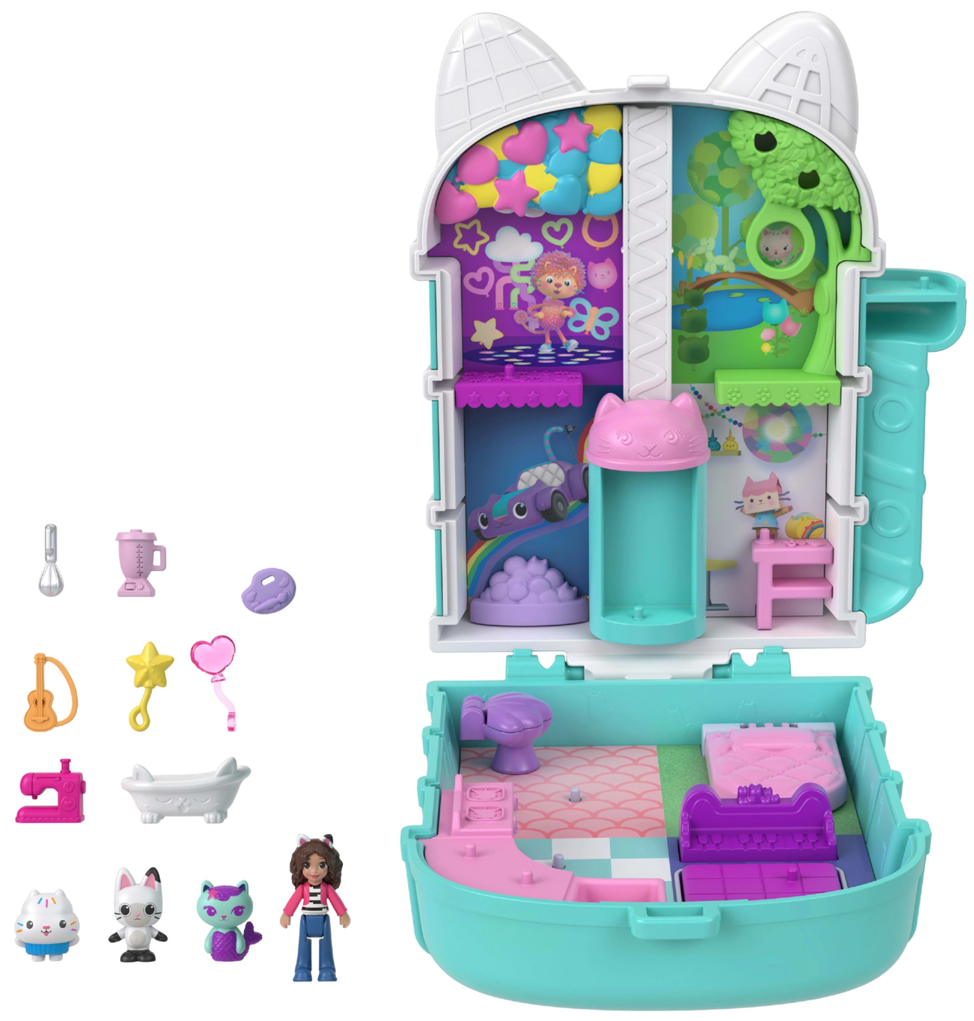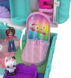 Das kompakte Katzenhaus von Polly Pocket bringt Kindern eine große Portion Fantasie in einem kleinen, tragbaren Case. Nach dem Öffnen erscheinen mehrstöckige Innenräume mit thematischen Zimmern, glitzernder Kuppel und beweglichen Elementen, die zu Geschichten inspiriert von GABBY’S DOLLHOUSE einladen.