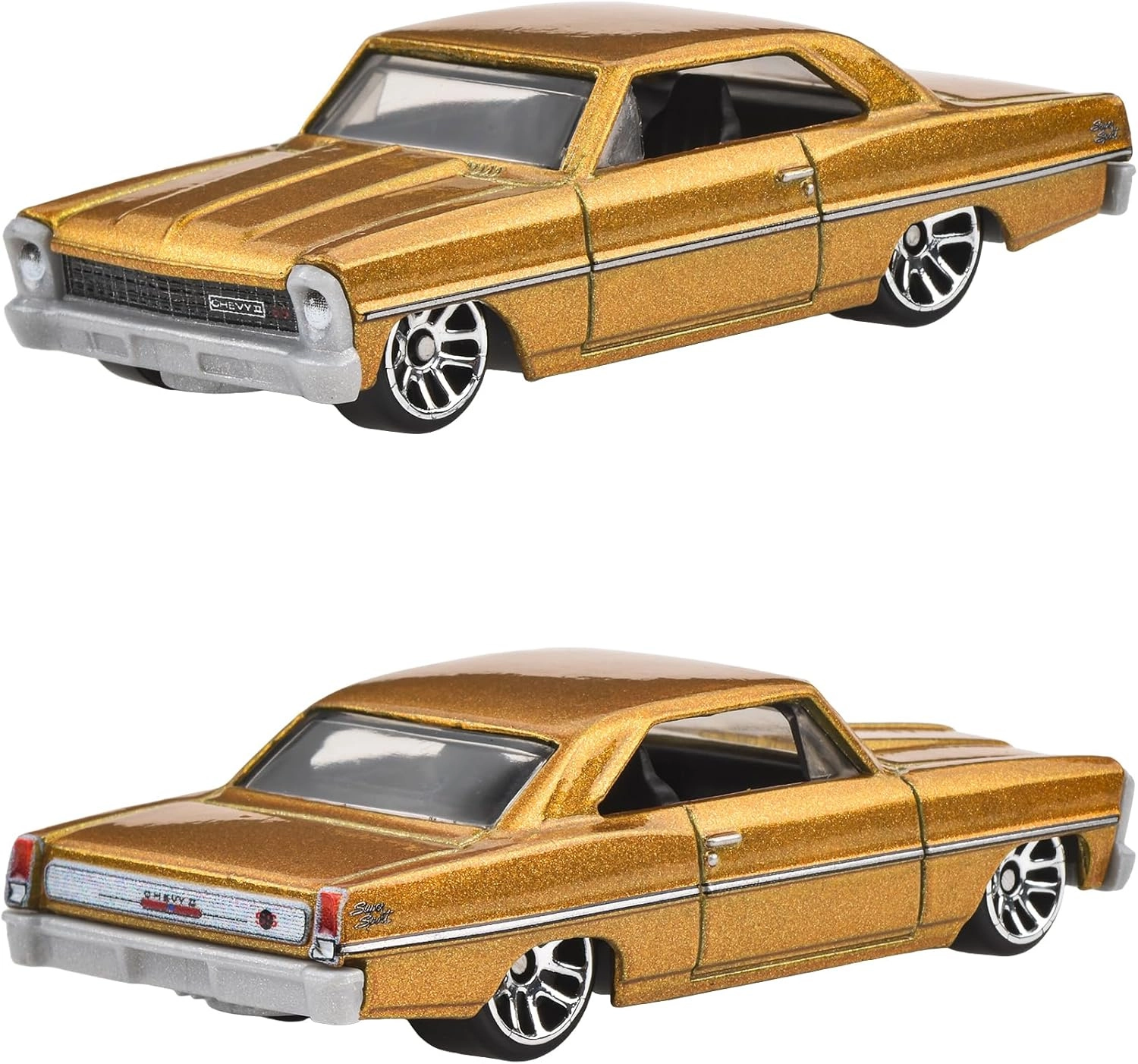 Präzise Karosserielinien, verchromte Stoßfänger und klare Fenster bilden die originale 1966 CHEVY NOVA getreu ab. Perfekt zum Spielen oder Ausstellen.