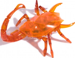 Der orangefarbene HEX BOTS Skorpion ist eine auffällige robotische Figur mit transparentem Gehäuse, die mit dynamischer Bewegung und Lichteffekten begeistert. Der Vibrationsmechanismus bewegt seine vielen Beine, sodass er sich geschickt fortbewegt, die Richtung wechselt, gegen Wände stößt und sich unterhaltsam überschlägt. Der leuchtende Schwanz sorgt für eine eindrucksvolle visuelle Show.