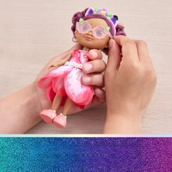Die Puppe hat einen dunkleren Teint, braune Augen und braune lockige Haare und trägt ein langes Blumenkleid. Dank der beweglichen Gelenke nimmt sie leicht verschiedene Posen ein und schafft zusammen mit dem Zubehör Raum für kreatives und fantasievolles Spiel.