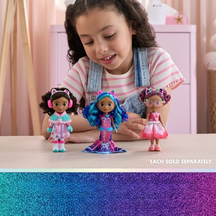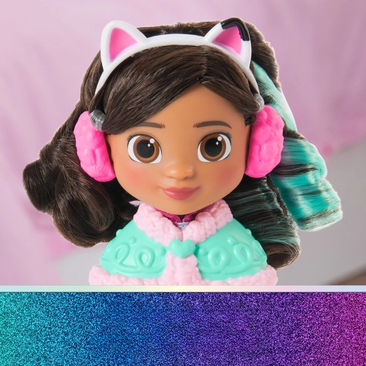 Diese lizenzierte Puppe, inspiriert von der beliebten Serie GABBYs Katzenhaus (Gabby's Dollhouse) von Spin Master, bietet Kindern stundenlangen kreativen Spielspaß. Gabby hat braune lockige Haare, braune Augen und ein stylisches Outfit – eine lange zuckersüße Jacke und weiße Leggings, die sich mit den winterlichen Accessoires im Set kombinieren lassen.