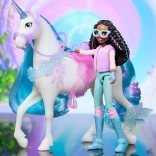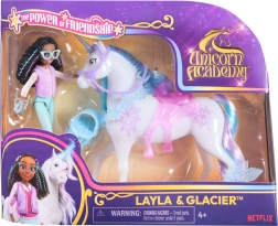 Entdecken Sie den Zauber der Welt von Sparkle Lake mit dem vom beliebten UNICORN ACADEMY-Serie inspirierten Set. Die Puppe Layla im farbenfrohen Outfit und das Einhorn Glacier mit blau‑violetter Mähne bringen Kindern stundenlangen Fantasiespielspaß. Dank der gelenkigen Gliedmaßen lässt sich Layla leicht in den Sattel setzen und in dynamische Posen bringen.