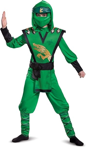 Das offiziell lizenzierte LEGO NINJAGO – Lloyd Kostüm der Marke Disguise verwandelt Ihr Kind in den beliebten grünen Ninja. Das Komplett-Set umfasst eine Tunika mit Druck, Hose, Gürtel, Stulpen und eine Maske für den perfekten Auftritt. Dank des angenehmen Materials und clever platzierten Gummizügen lässt sich das Kostüm leicht anziehen und sitzt gut.