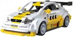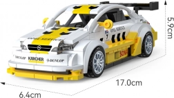 Dieses lizenzierte Modell des OPEL ASTRA V8 Coupé aus der legendären DTM-Serie bietet eine präzise gestaltete Karosserie in der typischen gelb-weißen Farbkombination mit Sponsorenlogos (z. B. Dunlop, Kärcher, Sonax). Nach dem Zusammenbau misst es 17 × 5,9 × 6,4 cm, womit es im Regal auffällt und zugleich ein angenehmes Bauerlebnis bietet.