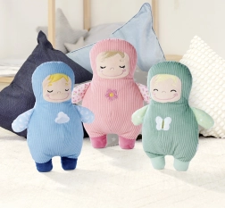 Die gerippte „Cord“-Oberfläche und die weiche Füllung fördern die taktile Stimulation und beruhigen beim Spielen und Einschlafen.