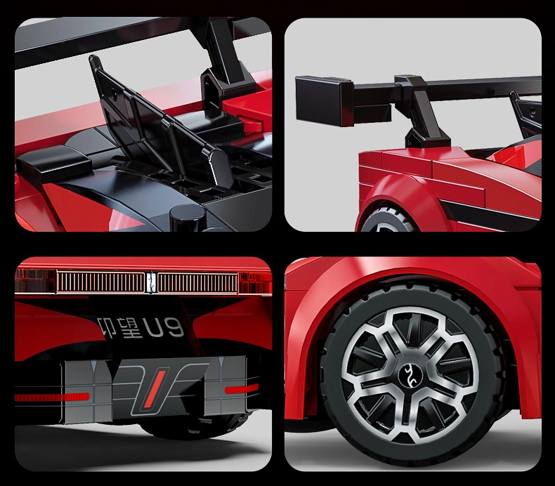 Genießen Sie den Bau und die Präsentation des präzise ausgearbeiteten YANGWANG U9 von CaDA. Das Modell legt Wert auf authentische Details, verfügt über drehbare Räder für sanfte Bewegung auf ebenen Flächen und eine elegante rote Ausführung. Im Set enthalten ist außerdem eine exklusive Karte mit dem Aufdruck „YANGWANG U9“.