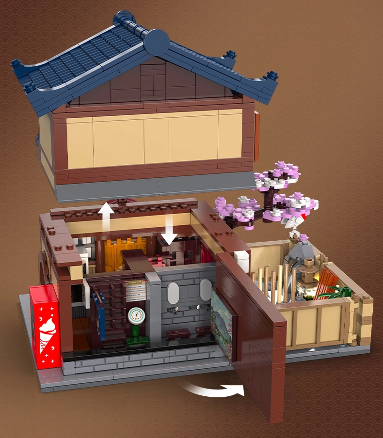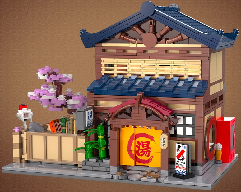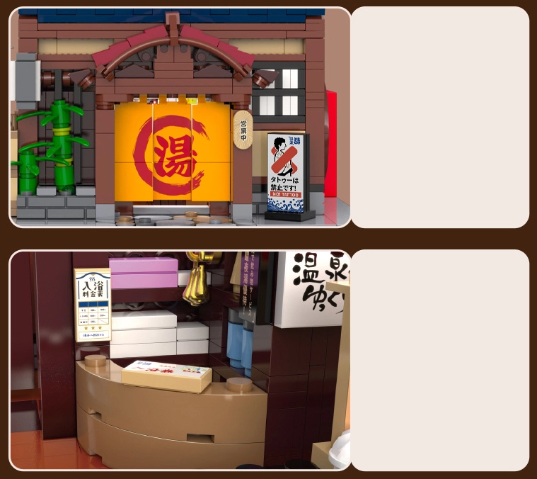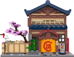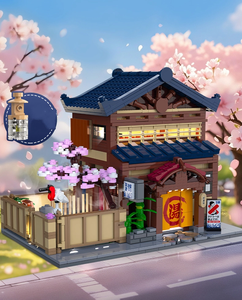 Dieses ausgefeilte Modell eines traditionellen japanischen Sento-Bads bringt die authentische Atmosphäre des Fernen Ostens direkt in Ihre Sammlung. Die Außenfassade besticht durch architektonische Details wie Giebelschmuck, Kirschblüten und charakteristische Elemente des japanischen Stils. Dank der aufklappbaren Wände erhalten Sie einfachen Einblick ins Innere und können die realistisch gestalteteten Räume würdigen.
