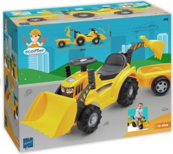 Dieser robuste Traktor mit Anhänger bietet Kindern viele Spielmöglichkeiten und fördert die Motorik. Die Bulldozer-Schaufel lässt sich leicht gegen die Baggerschaufel austauschen, sodass kleine Baumeister aufladen, abladen und transportieren können – ganz nach Lust und Laune. Dank des bequemen Sitzes mit Versteck sind Kleinigkeiten immer griffbereit.
