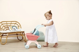 Der Wagen ist für Puppen bis 32 cm konzipiert, besitzt einen ergonomischen Griff für kleine Hände und eine robuste Kunststoffausführung für lange Haltbarkeit. Ideal zur Förderung von Empathie, Fürsorge und Fantasie bei Kindern ab 18 Monaten.
