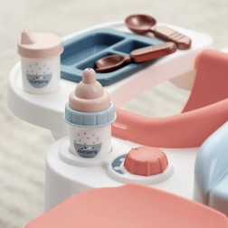 Fläschchen, Löffel, Döschen, Schüssel und weiteres Zubehör verleihen dem Spiel Authentizität und vermitteln Kindern Grundlagen der Pflege und Organisation.