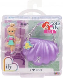 Diese Mini-Puppe mit langen blonden Haaren trägt ein türkis-rosa Outfit mit Meerjungfrauenmotiv. Den Stil ergänzen sportliche Schuhe und eine Mini-Handtasche in Muschelform. Das Set ist Teil der Premium-Kollektion von Jakks Pacific, inspiriert von beliebten DISNEY-Charakteren.