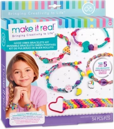 Kreiere originellen, farbenfrohen Schmuck mit Stimmung mit dem Set Make It Real Good Vibes. Im Paket findest du alles, was du für stylische Armbänder brauchst – Stickgarne, metallisches Schnurband, Perlen, Anhänger und einfache Anleitungen. Ein ideales kreatives Geschenk für Kinder und Einsteiger.