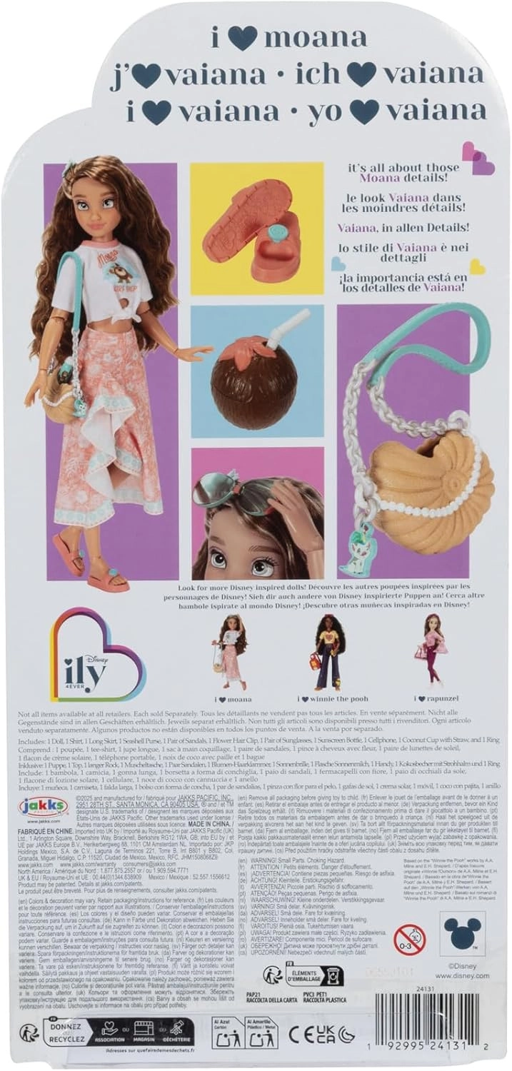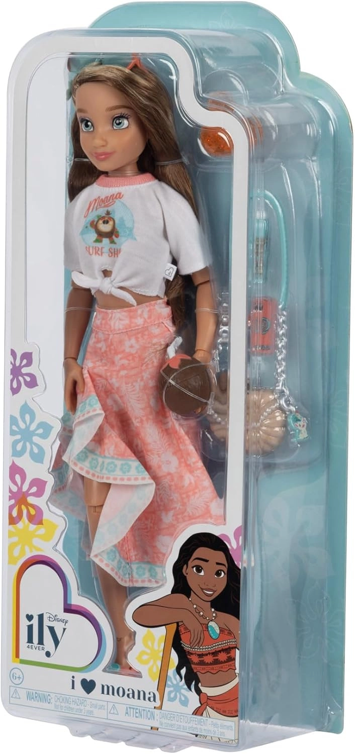 Entdecken Sie die Modepuppe Disney ILY 4EVER, inspiriert von MOANA – mit langen, welligen Haaren, detailreichem Outfit und umfangreichem Zubehör. Dank 13 Gelenken nimmt sie mühelos dynamische Posen ein und unterstützt die Fantasie beim Erzählen von Geschichten am Meer oder in der Stadt.