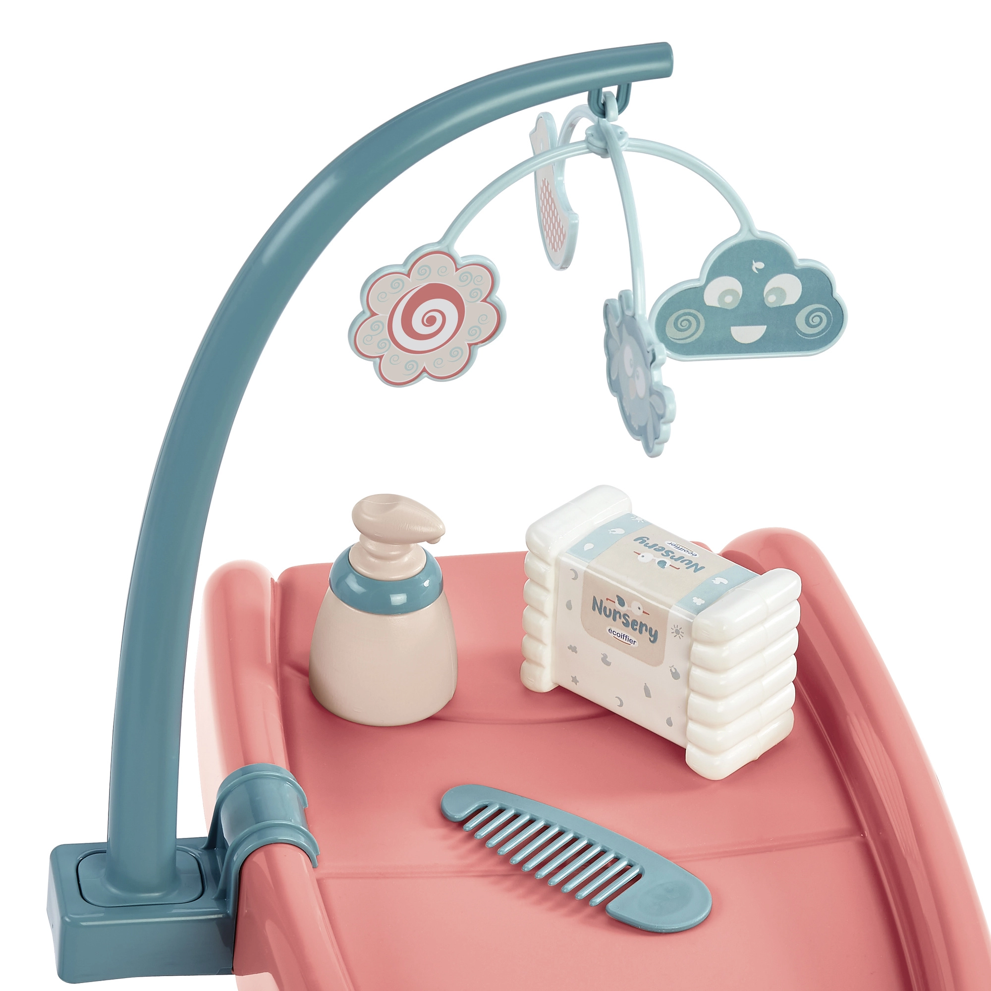 Ecoiffier Nursery 3-in-1 ist ein vielseitiges Set für die Puppenpflege, das alles von Füttern über Wickeln bis hin zum Baden bietet. Dank der drei Spielbereiche und des umfangreichen Zubehörs können Kinder die tägliche Babypflege nachahmen und eigene Geschichten erfinden. Pastellfarben und abgerundete Formen sorgen für eine angenehme Optik und sicheres Handling.